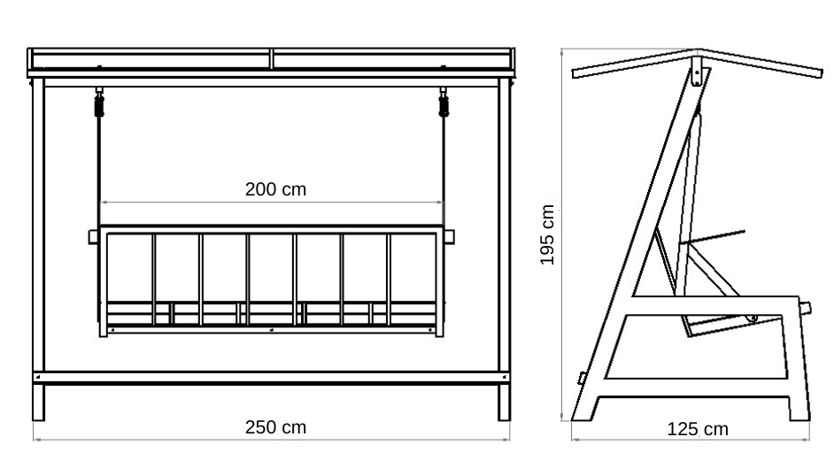 | SLC-02 BÜYÜK BOY AHŞAP SALINCAK | | 1. Sınıf Çamdan İmal Edilmektedir. | | Salıncak Genişliği | Salıncak Derinliği | Salıncak Yüksekliği | | 260 cm | 147 cm | 195 cm | | Oturma Genişliği | Oturma Derinliği | Sırt Yüksekliği | | 162 cm | 64 cm | 69 cm | | 17.000,00 TL + KDV | Ürünlerimiz demonte olarak sevk edilmektedir. Nakliye ve Montaj bedeli hariçtir. | |