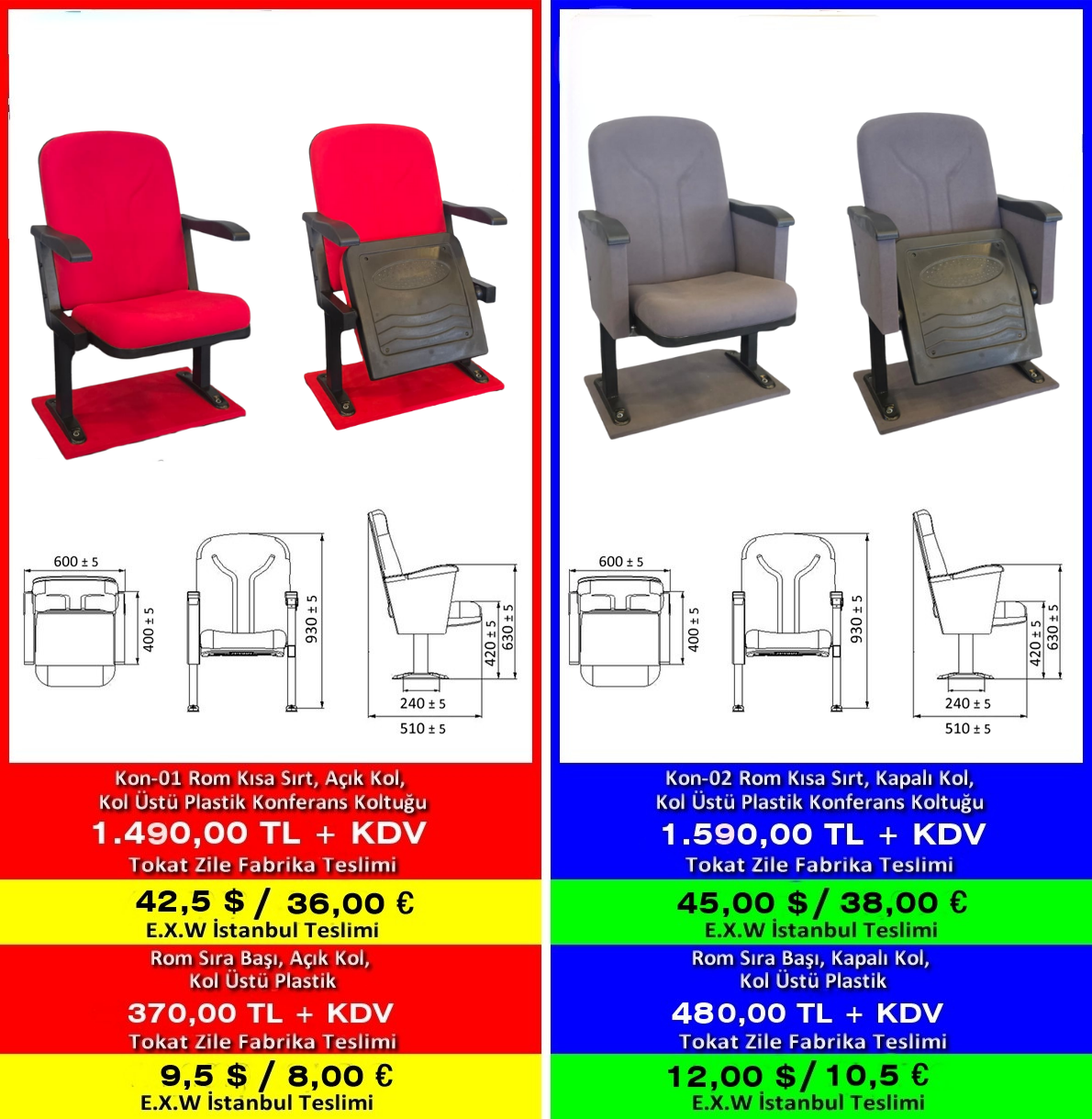 Sitemizdeki fiyatlar Tek Kollu (Ortak Kollu) konferans koltukları için geçerlidir. Sıra başları ve Çift kol fiyatlarımıza dahil değildir.