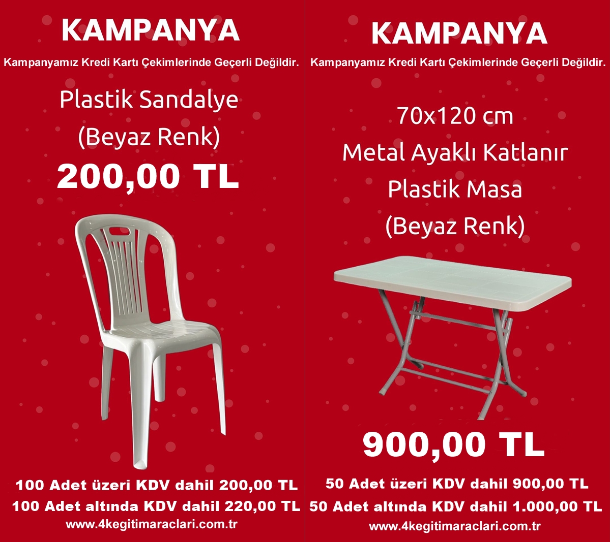 70x120 Plastik Masa 900,00 TL  | Not: Satışlarımız Toptandır. Minimum 100-250 Adet ve Üzeri Sipariş Alınır. Lütfen Numune Talep Etmeyiniz! Ürünler Birebir Stüdyo Çekimidir. En, Boy, Yükseklik, Renk ve Gramaj Belirtilmiştir. Talebiniz Hangi Ürünse O Ürün Gelir. Farklı Ürün Gelmez! Ürünlerimizin Fiyatı Fabrika Teslim Fiyatıdır.