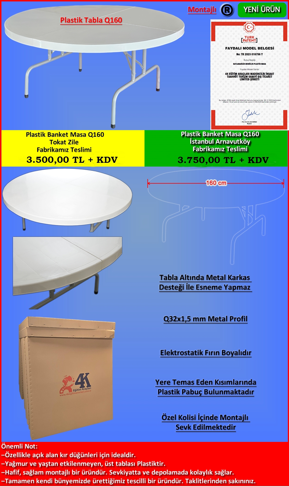Yuvarlak Banket Masa Q160 cm HAM MDF Tablalı Fiyat Sorunuz.