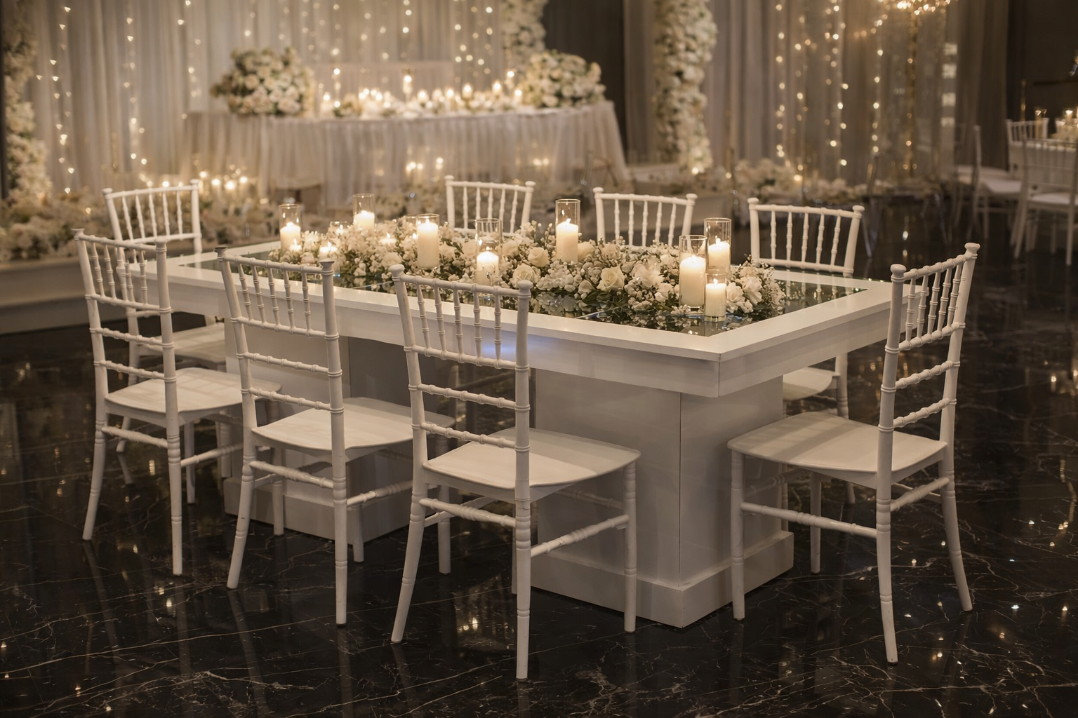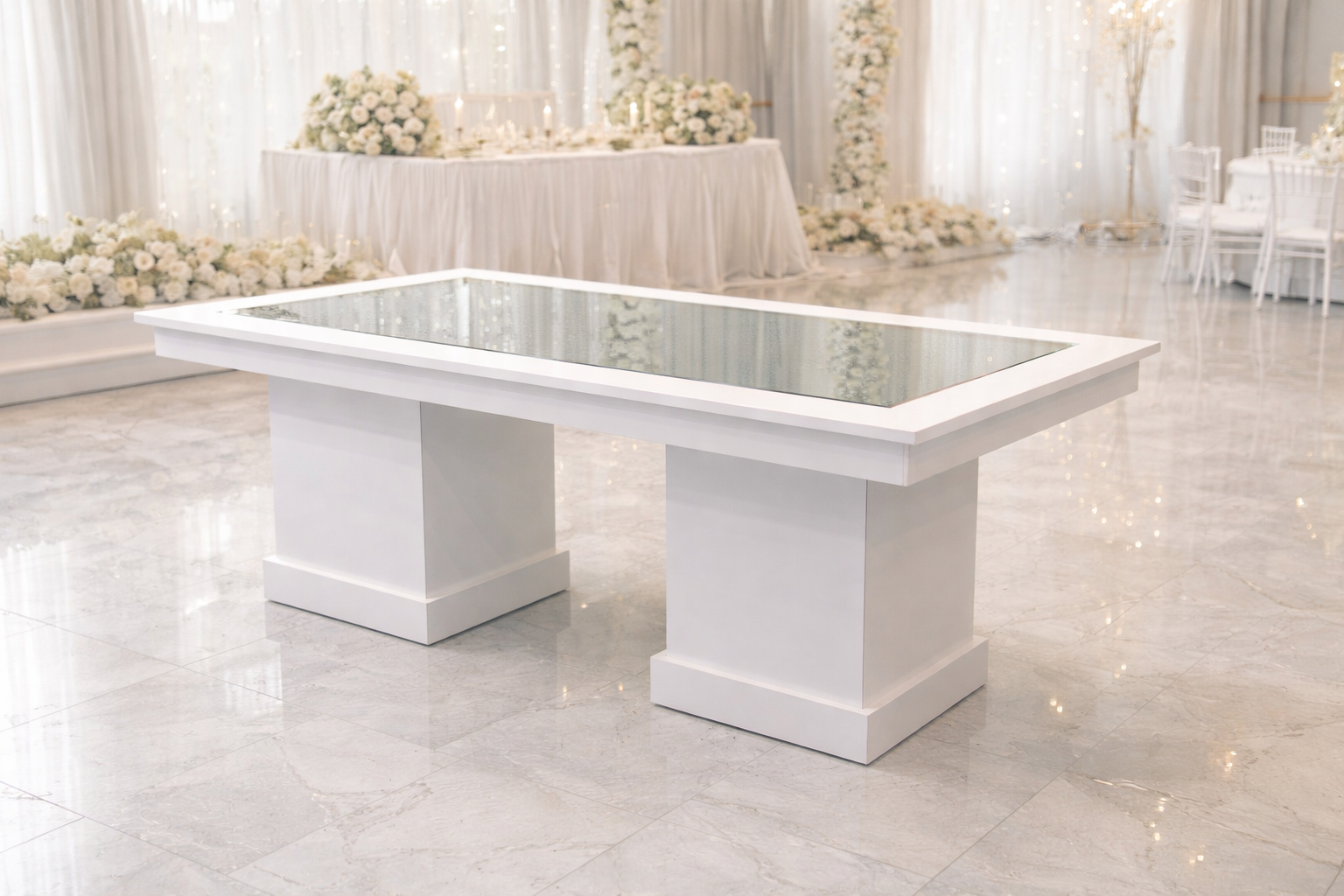 | Beyaz Aynalı Davet Masası | | | Fabrika Teslimi | 100x200 cm | Beyaz | 10.000,00 TL + KDV | | İstoç Teslimi | 100x200 cm