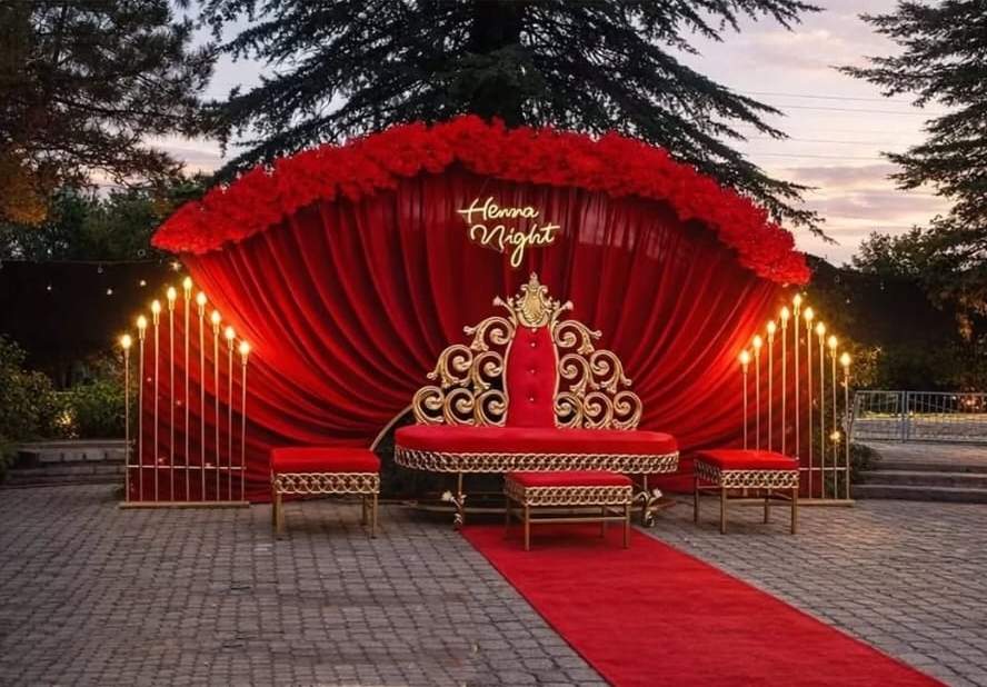 NM-03 Pırlanta Kızıl Gölge Nikah Masası | | | Ürün Cinsi | Genişlik | Derinlik | Yükseklik | | Masa | 192 cm | 92 cm | 80 cm | | Sandalye | 55 cm | 60 cm | 175 cm | | Puf | 75 cm | 45 cm | 45 cm | | Fiyat Sorunuz. | |