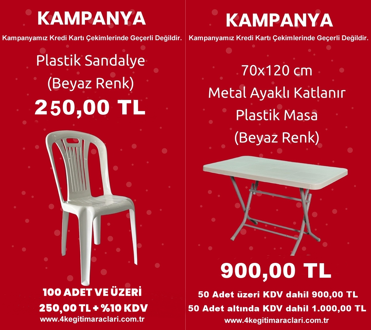 | |  | | Tiffany Sandalye Orjinal | | | Miktar | Beyaz | Altın, Gümüş, Sedef | Siyah | | 1-9 Adet | Fiyat Sorunuz. | Fiyat Sorunuz. | Fiyat Sorunuz. | | 10-49 Adet | Fiyat Sorunuz. | Fiyat Sorunuz. | Fiyat Sorunuz. | | 50-249 Adet | Fiyat Sorunuz. | Fiyat Sorunuz. | Fiyat Sorunuz. | | 250+ Adet | Fiyat Sorunuz. | Fiyat Sorunuz. | Fiyat Sorunuz. | | | Napolyon Sandalye Orjinal |  | | Miktar | Beyaz | Altın, Gümüş, Sedef | Siyah | | 1-9 Adet | Fiyat Sorunuz. | Fiyat Sorunuz. | Fiyat Sorunuz. | | 10-49 Adet | Fiyat Sorunuz. | Fiyat Sorunuz. | Fiyat Sorunuz. | | 50-249 Adet | Fiyat Sorunuz. | Fiyat Sorunuz. | Fiyat Sorunuz. | | 250+ Adet | Fiyat Sorunuz. | Fiyat Sorunuz. | Fiyat Sorunuz. | | | Sezar Sandalye Orjinal |  | | Miktar | Beyaz | Altın, Gümüş, Sedef | Siyah | | 1-9 Adet | Fiyat Sorunuz. | Fiyat Sorunuz. | Fiyat Sorunuz. | | 10-49 Adet | Fiyat Sorunuz. | Fiyat Sorunuz. | Fiyat Sorunuz. | | 50-249 Adet | Fiyat Sorunuz. | Fiyat Sorunuz. | Fiyat Sorunuz. | | 250+ Adet | Fiyat Sorunuz. | Fiyat Sorunuz. | Fiyat Sorunuz. | | | Pera Sandalye Orjinal |  | | Miktar | Beyaz | Altın, Gümüş, Sedef | Siyah | | 1-9 Adet | Fiyat Sorunuz. | Fiyat Sorunuz. | Fiyat Sorunuz. | | 10-49 Adet | Fiyat Sorunuz. | Fiyat Sorunuz. | Fiyat Sorunuz. | | 50-249 Adet | Fiyat Sorunuz. | Fiyat Sorunuz. | Fiyat Sorunuz. | | 250+ Adet | Fiyat Sorunuz. | Fiyat Sorunuz. | Fiyat Sorunuz. | | | Zela Sandalye Orjinal |  | | Miktar | Beyaz | Altın, Gümüş, Sedef | Siyah | | 1-9 Adet | Fiyat Sorunuz. | Fiyat Sorunuz. | Fiyat Sorunuz. | | 10-49 Adet | Fiyat Sorunuz. | Fiyat Sorunuz. | Fiyat Sorunuz. | | 50-249 Adet | Fiyat Sorunuz. | Fiyat Sorunuz. | Fiyat Sorunuz. | | 250+ Adet | Fiyat Sorunuz. | Fiyat Sorunuz. | Fiyat Sorunuz. | | | PLASTİK BANKET MASA Q160 CM |  | | | Plastik Klasik Sandalye (Orjinal) |  | | Ağırlık | Derinlik | Yükseklik | Genişlik | | 2000 gr | 41 cm | 87 cm | 52 cm | 100 Adet ve Üzeri | 250,00 TL + %10 KDV | 250,00 TL + %10 KDV | | | | Fx-02 Milas / İrem Koltuk (34'lü Paket) | | | Ağırlık | Derinlik | Yükseklik | Genişlik | O.Yüksekliği | | 2500 gr | - cm | 81 cm | 57 cm | 45 cm | | Lojistik Bilgileri | | 20 DC | 40 HC | Tır | Paketleme Şekli | | - Adet | 3250 Adet | 3500 Adet | Streç | Fabrika Teslimi 476 Adet ve Üzeri | Milas Eko | Sis Beyaz, Tik, Kahve, Koyu Yeşil | Fiyat Sorunuz. | | İrem Orjinal | Beyaz | Fiyat Sorunuz. | İstoç Teslimi 476 Adet ve Üzeri | Milas Eko | Sis Beyaz, Tik, Kahve, Koyu Yeşil | Fiyat Sorunuz. | | İrem Orjinal | Beyaz | Fiyat Sorunuz. | | | | Fx-03 Plato Koltuk (30'lu Paket) | | | Ağırlık | Genişlik | Derinlik | Yükseklik | | 2450 gr | 52 cm | - cm | 73 cm | | 40 HC | Tır | Ambalaj Ölçüsü | Ambalaj Ağırlığı | | 2760 Adet | 3000 Adet | - cm | - kg | Fabrika Teslimi 300 Adet ve Üzeri | Orjinal | Beyaz, Kırmızı, Yeşil, Mavi, Turuncu, Sarı | Fiyat Sorunuz. | İstoç Teslimi 300 Adet ve Üzeri | Orjinal | Beyaz, Kırmızı, Yeşil, Mavi, Turuncu, Sarı | Fiyat Sorunuz. | | | Fx-04 70x120 cm Katlanır Metal Ayaklı Masa | | | Ağırlık | Genişlik | Derinlik | Yükseklik | | 7200 gr | 70 cm | 120 cm | 75 cm | | 40 HC | Tır | Ambalaj Ölçüsü | Ambalaj Ağırlığı | Demonte 1000 Adet | Demonte 1250 Adet | - cm | - kg | Fabrika Teslimi 250 Adet ve Üzeri | Eko | Sis Beyaz, Tik, K.Yeşil, K.Kahve | Fiyat Sorunuz. | Fabrika Teslimi 250 Adet ve Üzeri | Orjinal | Beyaz | Fiyat Sorunuz. | İstoç Teslimi 50 Adet ve Üzeri | Orjinal | Beyaz | Fiyat Sorunuz. | İstoç Teslimi 1-50 Adet ve Üzeri | Orjinal | Beyaz | Fiyat Sorunuz. | | | | Fx-05 Hünkar / Zeugma Koltuk (30'lu Paket) | | | Ağırlık | Genişlik | Derinlik | Yükseklik | | 3300 gr | 57 cm | 62 cm | 90 cm | | 40 HC | Tır | Ambalaj Ölçüsü | Ambalaj Ağırlığı | | 2200 Adet | 2640 Adet | - cm | 99 kg | Fabrika Teslimi 300 Adet ve Üzeri | Hünkar Eko | Tik, K.Kahve, K.Yeşil, Kapuçino | Fiyat Sorunuz. | Fabrika Teslimi 300 Adet ve Üzeri | Zeugma Orjinal | Beyaz | Fiyat Sorunuz. | | | | Fx-06 Bergama / Elit Koltuk (30'lu Paket) | Fx-07 Everest / Alaçatı Koltuk (30'lu Paket) | | | | Ağırlık | Genişlik | Derinlik | Yükseklik | Ağırlık | Genişlik | Derinlik | Yükseklik | | 3300 gr | 57 cm | 62 cm | 90 cm | 3300 gr | 57 cm | 62 cm | 90 cm | | 40 HC | Tır | Ambalaj Ölçüsü | Ambalaj Ağırlığı | 40 HC | Tır | Ambalaj Ölçüsü | Ambalaj Ağırlığı | | 2200 Adet | 2640 Adet | - cm | 99 kg | 2200 Adet | 2640 Adet | - cm | 99 kg | Fabrika Teslimi 300 Adet ve Üzeri | Bergama Eko | Tik, K.Kahve, K.Yeşil, Kapuçino | Fiyat Sorunuz. | Fabrika Teslimi 300 Adet ve Üzeri | Everest Eko | Tik, K.Kahve, K.Yeşil, Kapuçino | Fiyat Sorunuz. | Fabrika Teslimi 300 Adet ve Üzeri | Elit Orjinal | Beyaz | Fiyat Sorunuz. | Fabrika Teslimi 300 Adet ve Üzeri | Alaçatı Orjinal | Beyaz | Fiyat Sorunuz. | | | | Mup-41 Karanfil Sandalye (36'lı Paket) | | | Genişlik | Derinlik | Yükseklik | Kamyon | Tır | 40'lik Konteyner | | 40 cm | 38 cm | 87,5 cm | 1980 Adet | 3600 Adet | 3060 Adet | Fabrika Teslimi 216 Adet ve Üzeri | Orjinal | Beyaz, Tik | Fiyat Sorunuz. | İstoç Mağaza Teslimi 216 Adet ve Üzeri | Orjinal | Beyaz, Tik | Fiyat Sorunuz. | | | | Mup-01 Mega Monoblok Koltuk (20'li Paket) | | | Genişlik | Derinlik | Yükseklik | Kamyon | Tır | 40'lik Konteyner | | 56 cm | 42 cm | 78 cm | 1872 Adet | 3700 Adet | 3168 Adet | | Fabrika Teslimi | 200 Adet ve Üzeri | Eko | K.Yeşil, K.Mavi, K.Kahve | Fiyat Sorunuz. | | 200 Adet ve Üzeri | Orjinal | Beyaz | Fiyat Sorunuz. | | İstoç Mağaza Teslimi | 200 Adet ve Üzeri | Eko | K.Yeşil, K.Mavi, K.Kahve | Fiyat Sorunuz. | | 200 Adet ve Üzeri | Orjinal | Beyaz | Fiyat Sorunuz. | | | | Mup-02 Leylak Monoblok Koltuk (20'li Paket) | | | Genişlik | Derinlik | Yükseklik | Kamyon | Tır | 40'lik Konteyner | | 59 cm | 60,5 cm | 77,5 cm | 1824 Adet | 3520 Adet | 3040 Adet | | Fabrika Teslimi | 200 Adet ve Üzeri | Yeşil, Kırmızı, A.Mavi, Bej, Tik, Lila, K.Kahve, Beyaz | Fiyat Sorunuz. | | İst
